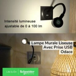 SCHNEIDER Odace – Prise USB Double – Charge Rapide – Type A+C – Anthracite – 18W – 3,4A (S540219)