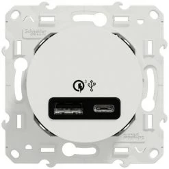 SCHNEIDER Odace – Prise USB Double – Charge Rapide – Type A+C – Blanc – 18W – 3,4A (S520219)
