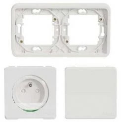 SCHNEIDER Mureva Styl – Double Prise 2P+T Précâblée Horiz – Saillie – IP55 – IK08 – Blanc (MUR36027)