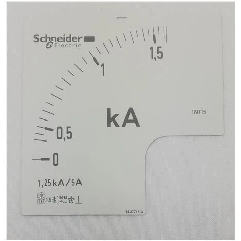 Rapport de transformation de courant : 1250/5. Type d’écart : 62 mm sur 90°.