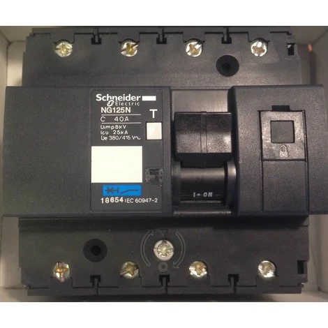 Application du Disjoncteur: Distribution. Gamme de produits: NG125. Type de produit: Disjoncteur. Nom abrégé d’appareil: NG125N. Description des pôles: 4P. Nombre de pôles protégés: 4. In courant assigné d’emploi: 40 A à 40 °C. Type de réseau: AC / DC. Technologie de déclencheur: Thermique-magnétique. Courbe de déclenchement: C. Pouvoir de coupure: 10 kA Icu conformément à EN/IEC 60947-2. 500 V AC 50/60 Hz / 20 kA Icu conformément à EN/IEC 60947-2. 440 V AC 50/60 Hz…