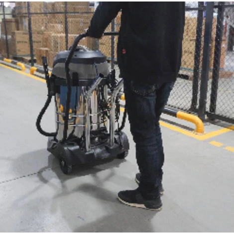 Aspirateur équipé d’un tuyau de vidange, de larges clips de fermeture, d’un porte accessoires, d’un range tuyau. IPX4.