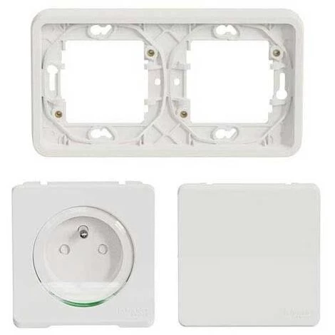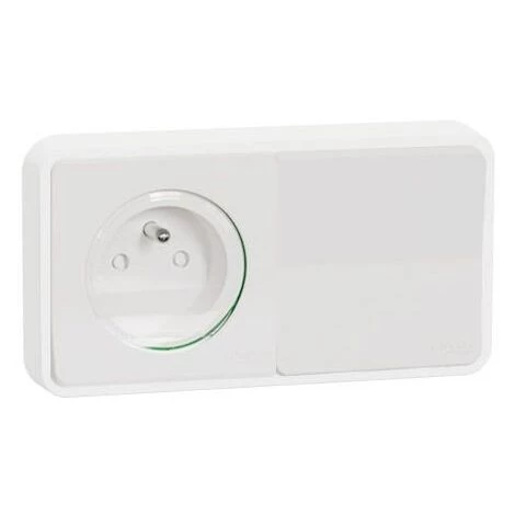 SCHNEIDER Mureva Styl Interrupteur va et vient et prise de courant 2P+T étanche complet encastré blanc IP55