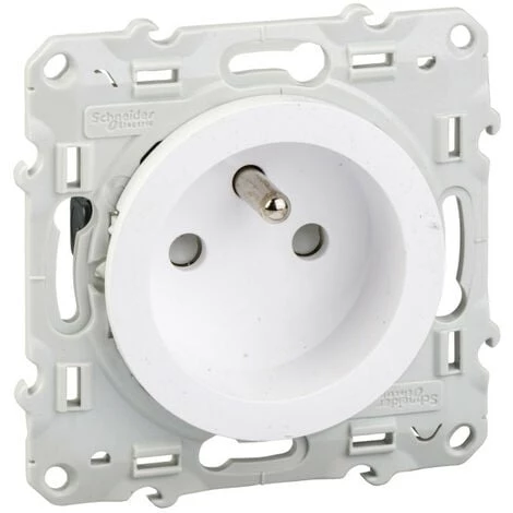 Odace – prise de courant – 2P+T – française – blanc RAL 9003 – brillant – lot de 40 – fixation griffes ou vis – Raccordement : 1×1,52×2,5mm² souple 1×1,52x4mm² rigide/multibrin – bornes sans vis – 16 A – 250 VCA 50 Hz – NF – IK04 IP21D