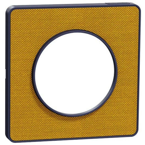 Odace Touch – Plaque de finition Kvadrat 1 poste -en tissus Ocre et liseré Cobalt