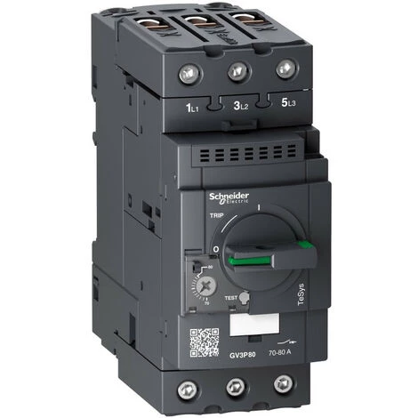 TeSys – disjoncteur moteur magnéto-thermique GV3P – 3P – commande par bouton rotatif – réglage th. 80A – moteur : 45kW à 400/415 V CA 50/60 Hz – courant déclench. magnétique 1120A – connecteurs à vis BTR EverLink