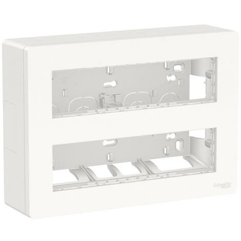 Unica – boîte de concentration en saillie complète – 2 rangées de 8 modules – Blanc antimicrobien – livrée avec support de fixation et plaque de finition