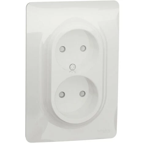 Unica – prise de courant 2P double à monter dans une boîte 1 poste – 16A – 250Vca – standard français – bornier à vis – Blanc – mécanisme + plaque de finition