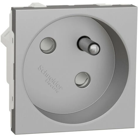 Unica – prise de courant 2P+T – 16A – 250Vca – standard français – 45° – raccordement rapide traversant – Alu – mécanisme seul