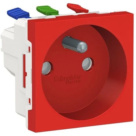 Unica – prise de courant 2P+T – 16A – 250Vca – standard français – 90° – raccordement rapide traversant – Rouge – mécanisme seul