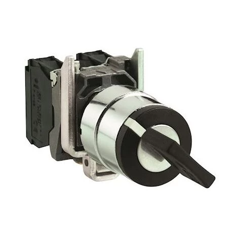 Gamme de produits : Harmony XB4. Type de produit ou de composant : Bouton-tournant complet. Nom abrégé d’appareil : XB4. Matériau de la collerette : Métal plaqué chrome. Matière de l’embase de fixation : Zamak. Diamètre de fixation : 22 mm. Positions de l’unité de commande : 2 position 90°. Description des contacts : 1 « F »